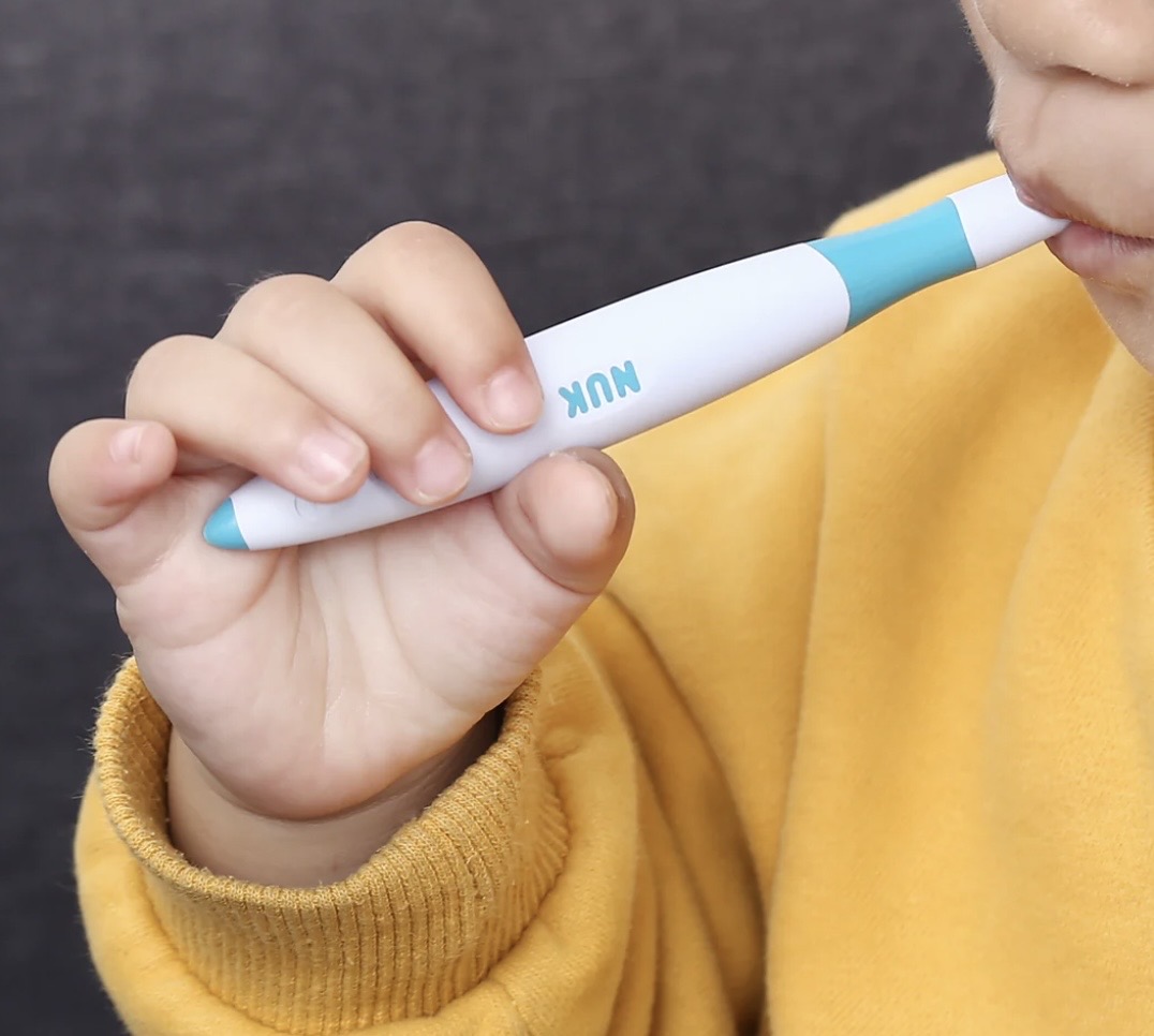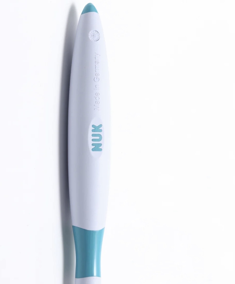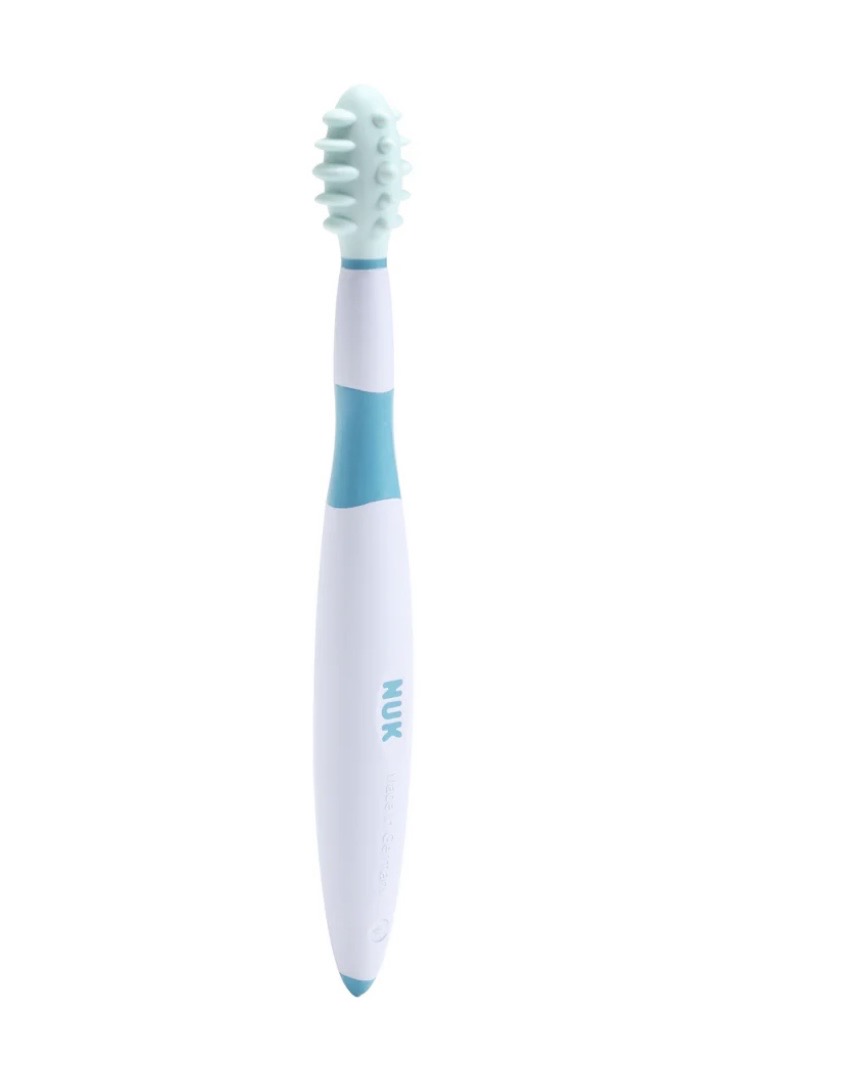 The NUK™ Massager Brush is a specialized sensory and oral-motor tool rather than a traditional toothbrush. It is designed to support infants and toddlers during their transition to solid foods by providing tactile exploration and gum stimulation.